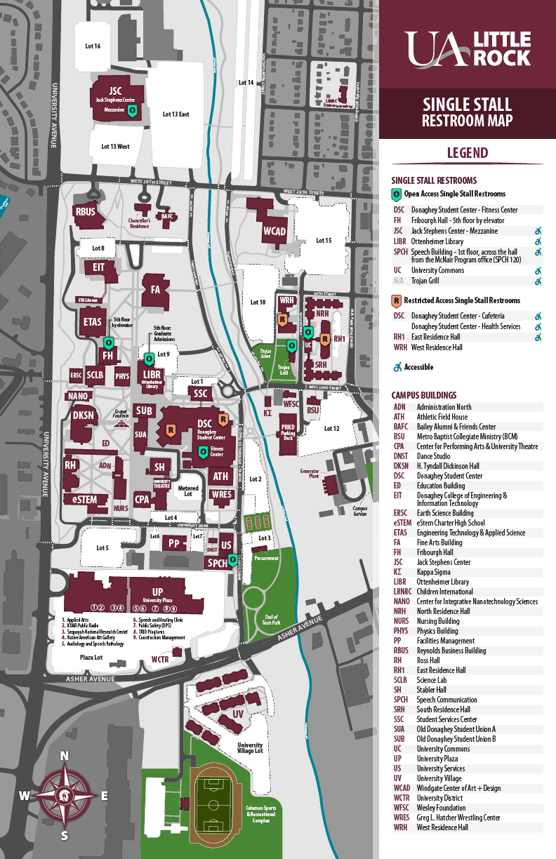 Thisย campus restroom mapย shows where all single stall restrooms are located on campus. The sites include: